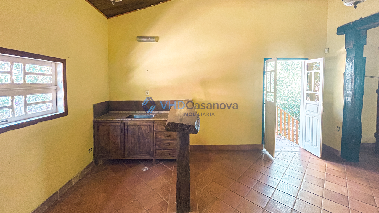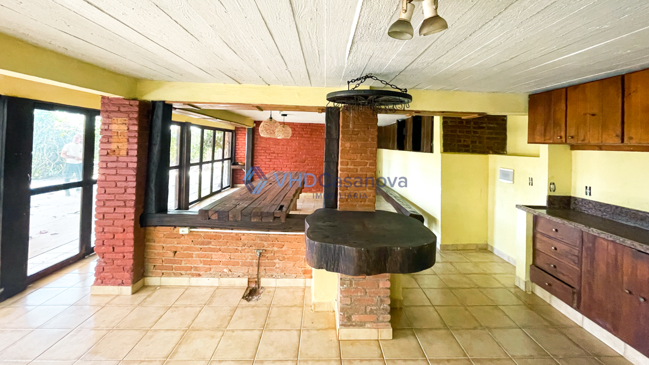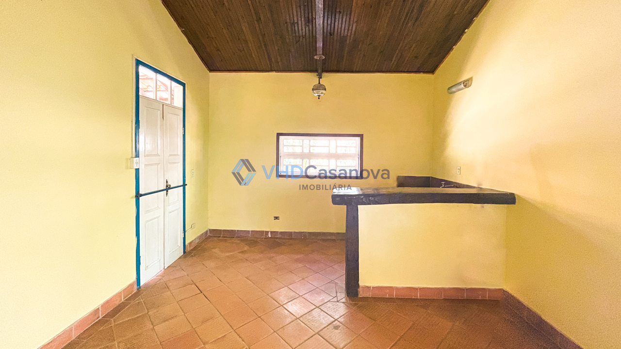 Casa com 04 quartos, sendo 01 suíte, varanda, sala, copa, banheiro social, cozinha ampla com fogão a lenha e armários, lavanderia, área externa coberta e quiosque.