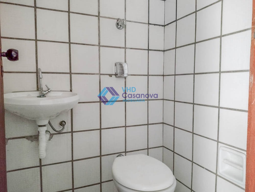 Sala com recepção e banheiro.